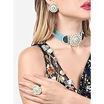 ZAVERI PEARLS Blue Meenakari Multistrand Crystals Beaded Kundan Choker Necklace Earring & Ring Set For Women-ZPFK14754