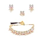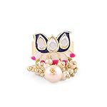 ZAVERI PEARLS Blue & Pink Meenakari Lotus Design Choker Necklace Earring & Ring Set For Women-ZPFK14435