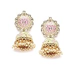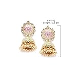Zaveri Pearls Enamelling Sea Green & Pink Kundan & Pearls Ethnic Jhumki Earring For Women-ZPFK9612