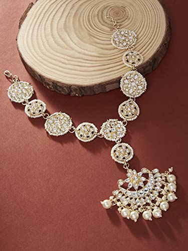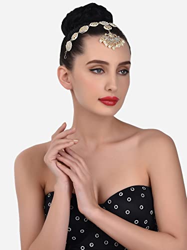Zaveri Pearls Gold Tone Bridal Kundan Push Back MathaPatti Style Maangtikka For Women-ZPFK13061