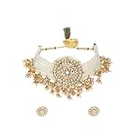 ZAVERI PEARLS Gold Tone Kundan & MultiStrand Pearls Choker Necklace & Earring Set For Women-ZPFK9805