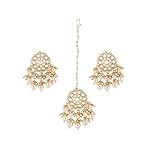 ZAVERI PEARLS Gold Tone Kundan & Pearls Traditional Drop Earring & Maangtikka Set For Women-ZPFK13161