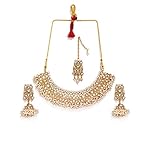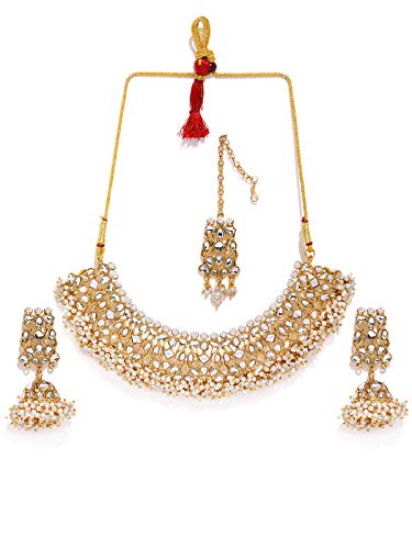 ZAVERI PEARLS Gold Tone Traditional Kundan & Pearls Choker Necklace Set For Women-ZPFK8480