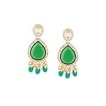 Zaveri Pearls Green Statement Stone Dazzling Austrian Diamonds Ethnic Dangle Earring For Women-ZPFK18330