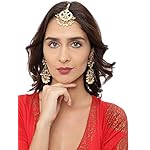 Take your ethnic accessories up a notch with this magnificent earring and maangtikka set. Team it with a saree or any traditional attire to make heads turn at the next wedding or festive occasion.