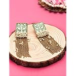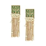 Zaveri Pearls Pastel Green Meenakari Chain Fringe Clustered Pearls Dangle Earring For Women-ZPFK10137