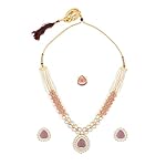 ZAVERI PEARLS Pink Purple Stones Embellished Kundan Necklace Earring & Ring Set For Women-ZPFK15937
