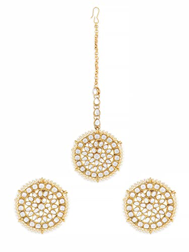 ZAVERI PEARLS Traditional Kundan & Pearls Earring & Maangtikka Set For Women-ZPFK8654