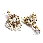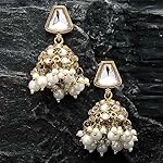ZENEME Gold-Plated Kundan & Pearls Studded Dome Shaped Mirror Jhumka Earrings For Girls and Women