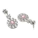 ZENEME Rhodium-Plated Silver Toned Square & Circular Shaped American Diamond Studded Necklace with Earring Jewellery Set for Girls and Women