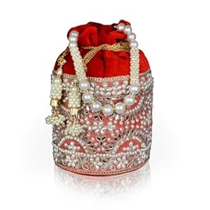 Kundhadiya Collections Pearl Potli Bags for Women | Potli Bags for Ladies | Potli Bags for Ladies for Wedding (Red)