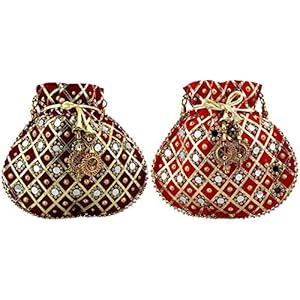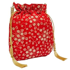 Amerie Fashions Women’s Red Floral Potli Bag Purse for Party Wedding