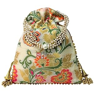 MILAN’S CREATION Designer Banarasi Brocade Potli Bag With Pearl Handle & Tassel Ethnic Wedding Purse Women’s Handbag